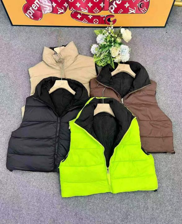 691件男女短款竖领加厚马夹棉服背心外套。面料超柔软,可以正反面穿,正反面都有一个拉链口袋,XS一L,圆筒包装,携带方便,全清13.8分货加1(模特图仅供参考)