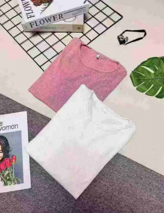 冰丝螺纹短袖,分叉下摆设计,整款两色,独立包装