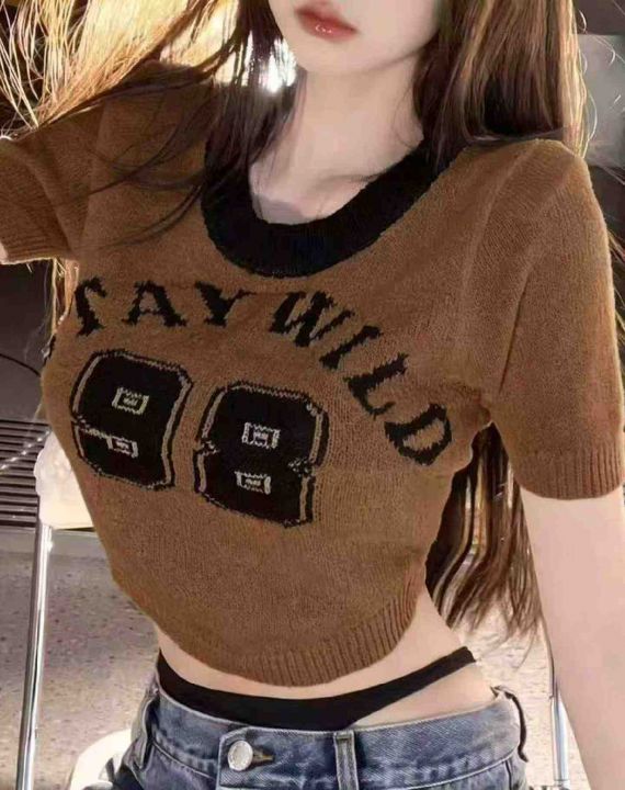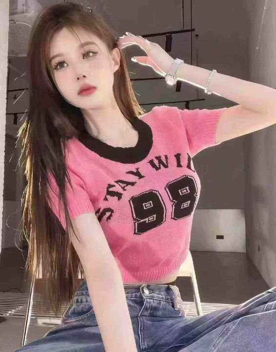 夏季新款辣妹性感短款弹力修身显瘦撞色提花短袖针织衫,独立包装,均码面料软糯舒适弹力大,200件,全清5.9元超低价秒杀!