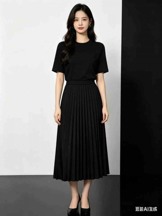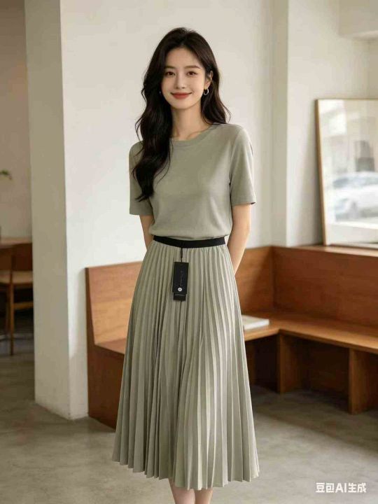 百褶半身裙高腰A字版型,显瘦显腿长,百搭不挑人