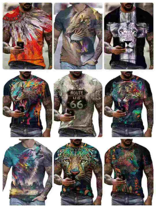 跨境3D男装短袖T恤,欧美爆款街头潮男短袖上衣,独立包装,码数:S-6XL,数量:100000