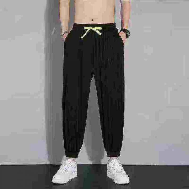 全清6.5元,6538条\'M-5XL裤子夏季男休闲薄款韩版ins潮牌冰丝条纹运动大码弹力宽松哈伦裤\'分货➕0.5