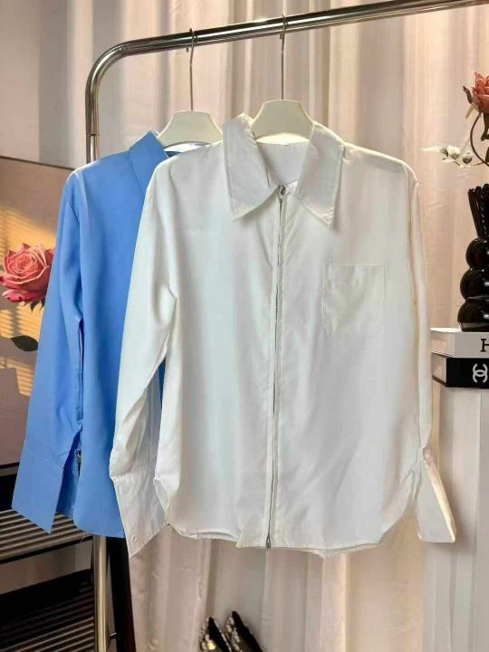 大码法式设计感双拉链POLO领长短袖衬衫女春夏薄款衬衣上衣外套 独立包装 码数1-4码(短袖200件左右长袖130件左右)全清5.5 分货加0.5