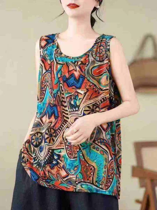 大码宽松遮肉中老年妈妈装打底衫无袖棉麻上衣女复古国潮内搭背心