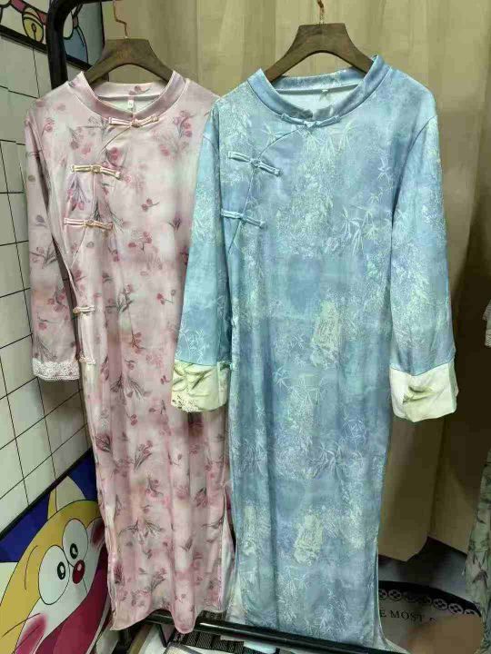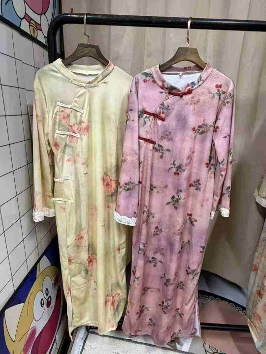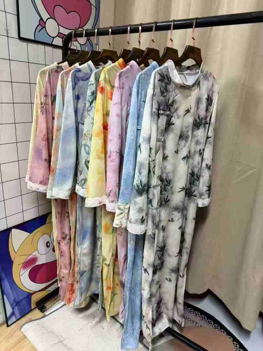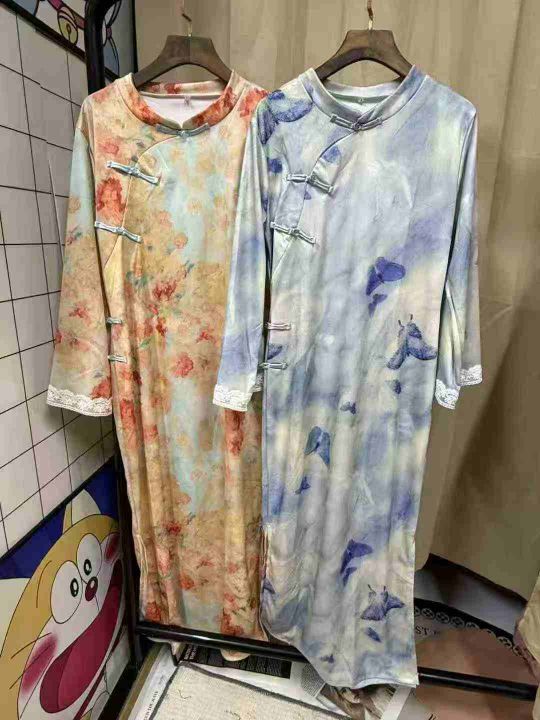 9.9清726件新中式旗袍 国风印花修身 春夏复古国风立领宽松款旗袍连衣裙 面料柔软有弹力 2个款多色 码数S-2XL 独立包装 全清元9.9元/件