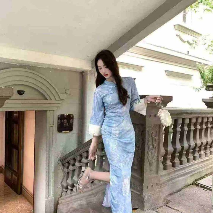 9.9清726件新中式旗袍 国风印花修身 春夏复古国风立领...