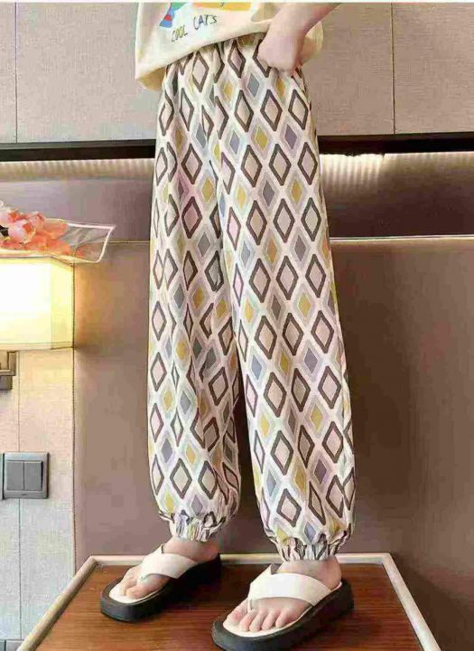 4.8元,中大童时尚印格冰丝裤,面料冰爽丝滑垂感有弹...
