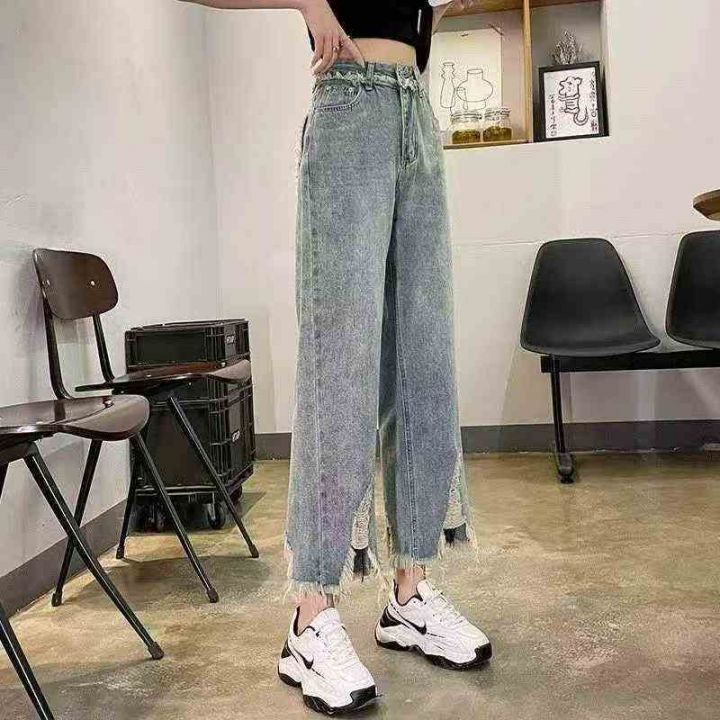 破洞牛仔裤女直筒新款九分夏季流苏开叉显瘦裤子 303件,全清11.8元,分货12.8元,码数/S/M/L/XL,正品独立包装,每件带有原吊牌。