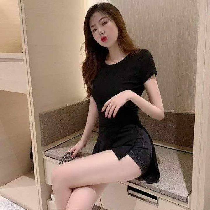 夏季韩版新款弹力修身性感开叉中长款圆领短袖纯色T桖,独立包装白色为主,码数S-2XL码,470件,全清5.8元超低价秒杀!分货加一!
