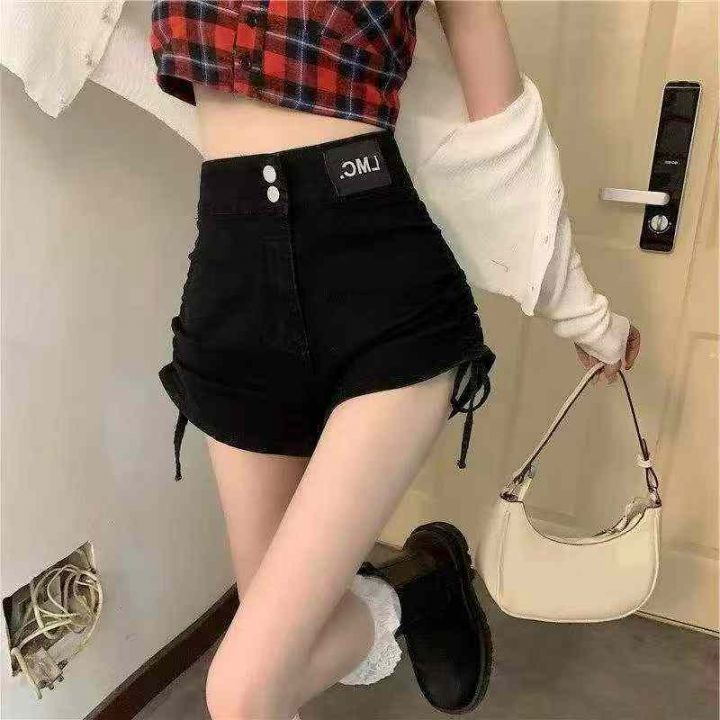 甜辣妹弹力牛仔短裤女夏季爆款抽绳高腰a字热裤110条全...