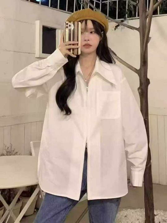 大码法式设计感双拉链POLO领长短袖衬衫女春夏薄款衬衣上衣外套 独立包装 码数1-4码(短袖200件左右长袖130件左右)全清5.5 分货加0.5