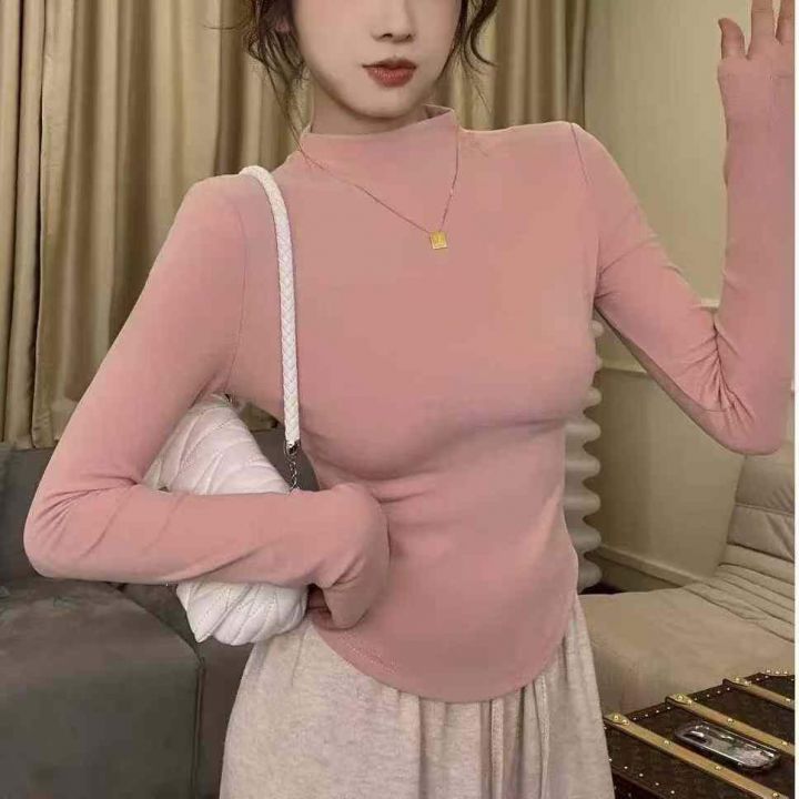 [發]女德绒磨毛半高领辣妹打底长袖70件