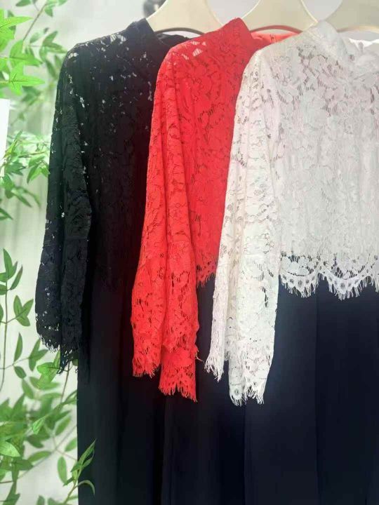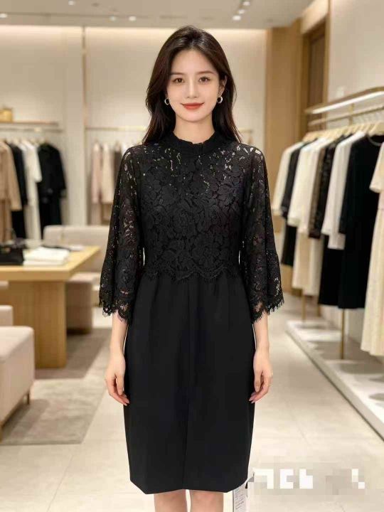 140件左右气质修身拼接蕾丝连衣裙,蝙蝠袖,尺码M-2XL...