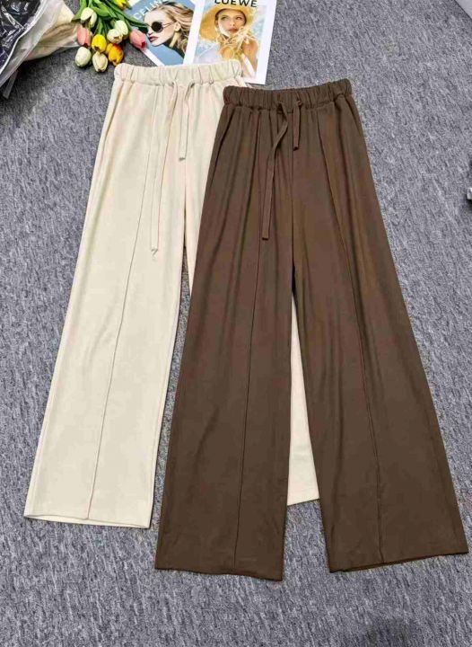 米尼柔软薄款高弹力阔腿直筒休闲裤,