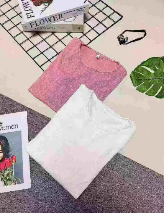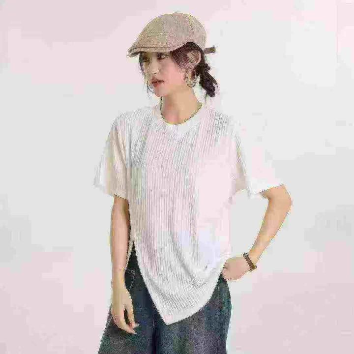 冰丝螺纹短袖,分叉下摆设计,整款两色,独立包装