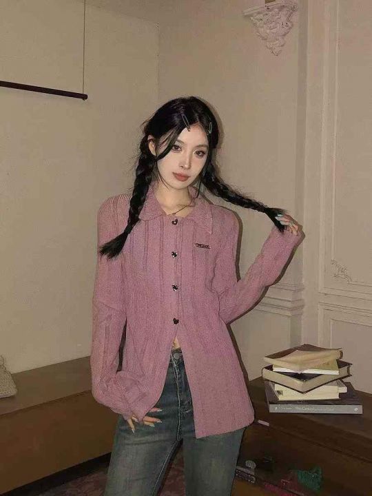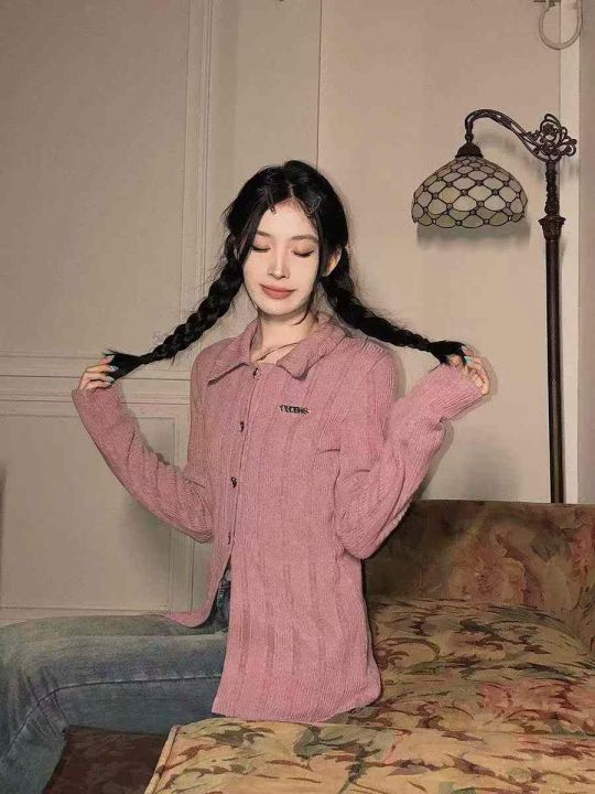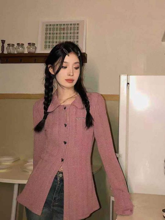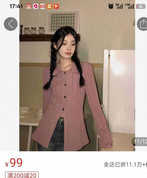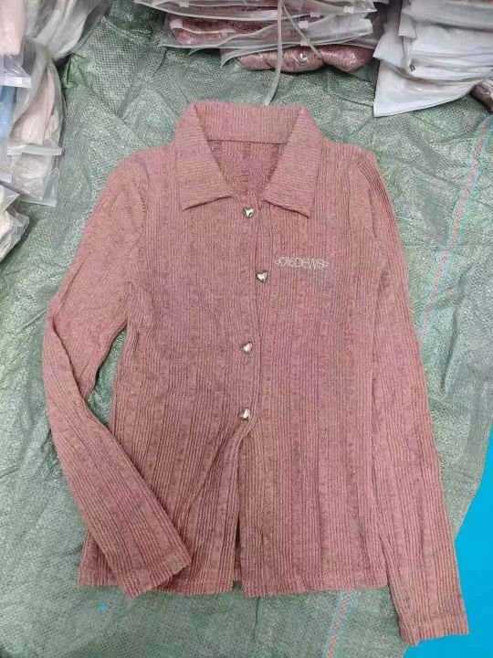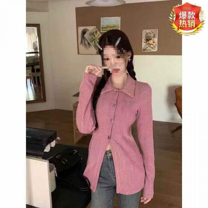 [發]女长袖针织上衣40件左右修身辣妹设计感polo领上衣...