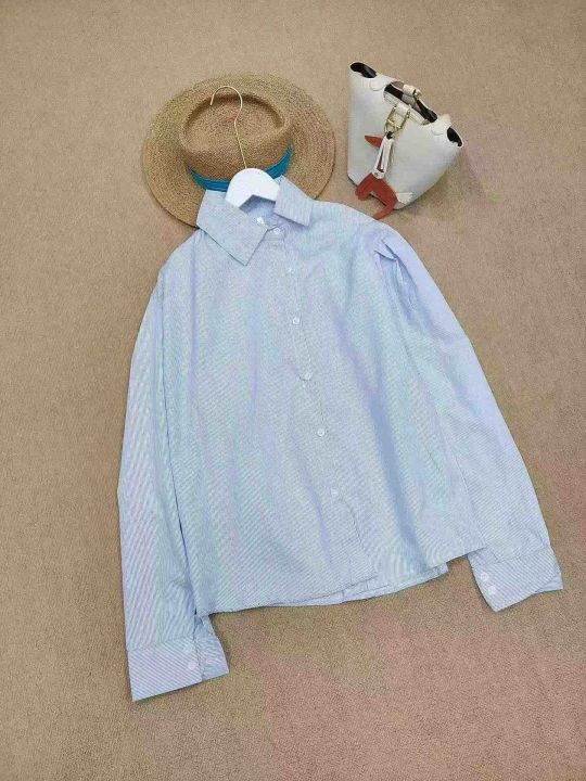 [月亮]:韩系港风蓝色条纹叠穿高级感休闲开衫衬衫