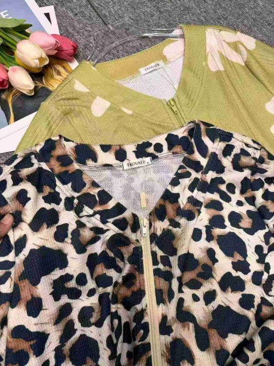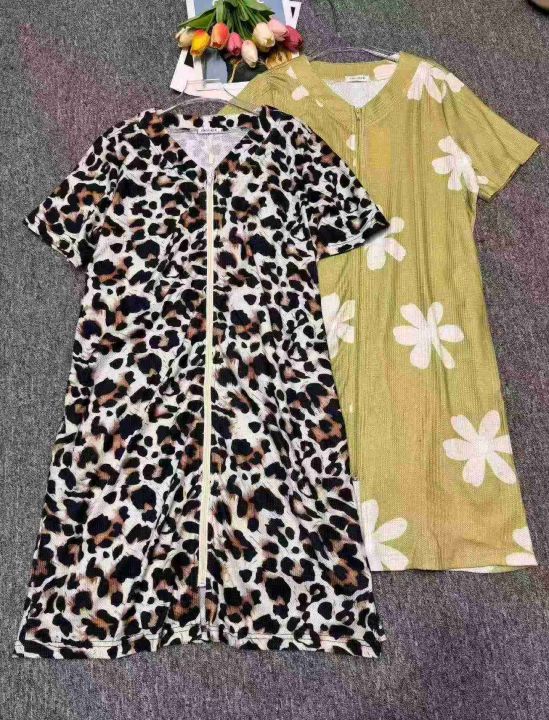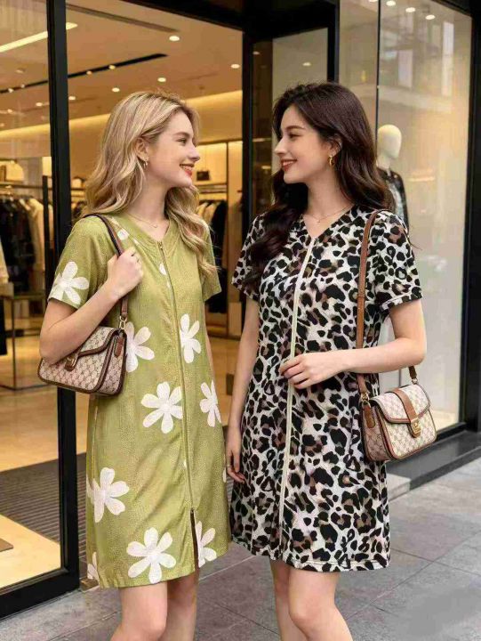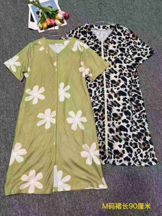 休闲长拉链印花气质宽松前开叉连衣裙,独立包装,整款两花色,M码裙长90厘米,码数S-3XL,数量305