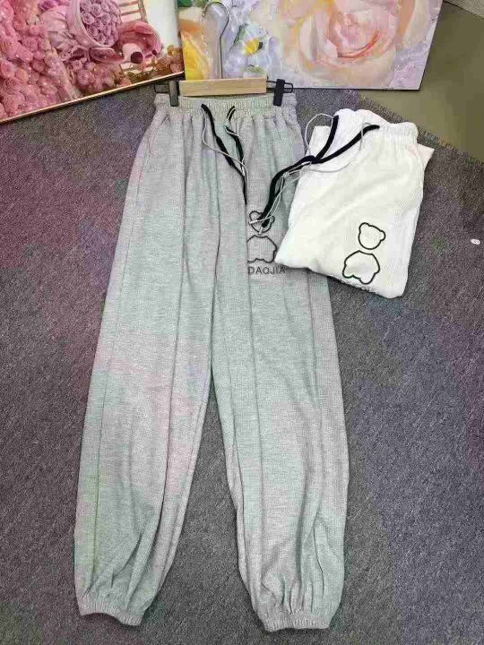 [猪头][猪头]6.8清785件运动裤女休闲长裤2026春夏季宽松显瘦针织条纹阔腿直...