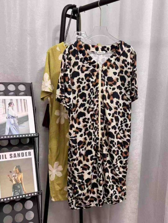 休闲长拉链印花气质宽松前开叉连衣裙,独立包装,整款两花色,M码裙长90厘米,码数S-3XL,数量305