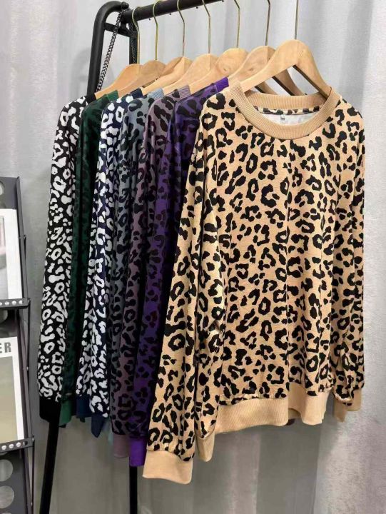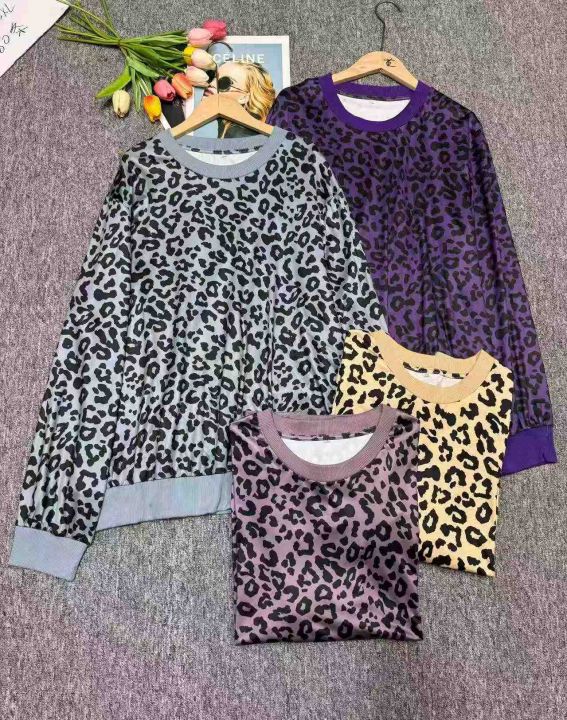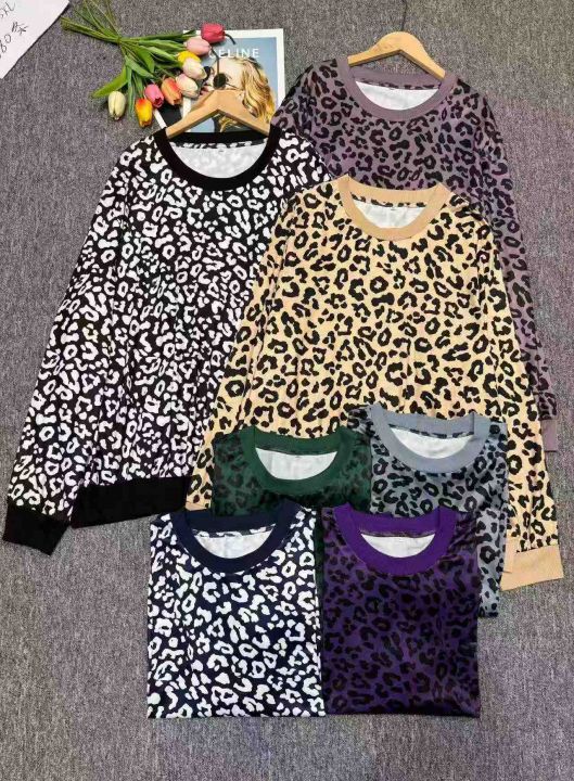 时尚气质豹纹印花撞色圆领长袖打底衫上衣,独立包装,整款多色,码数S-5XL,数量200件