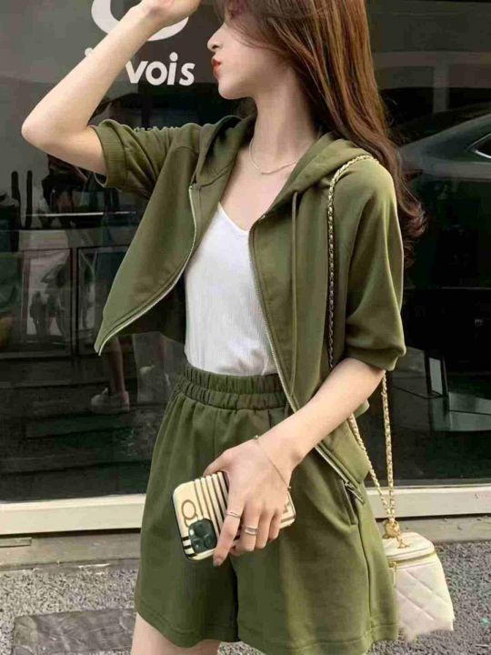 ① 夏季新款盐系拉链连帽外套短裤套装!独立包装,码...