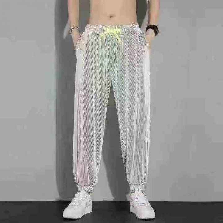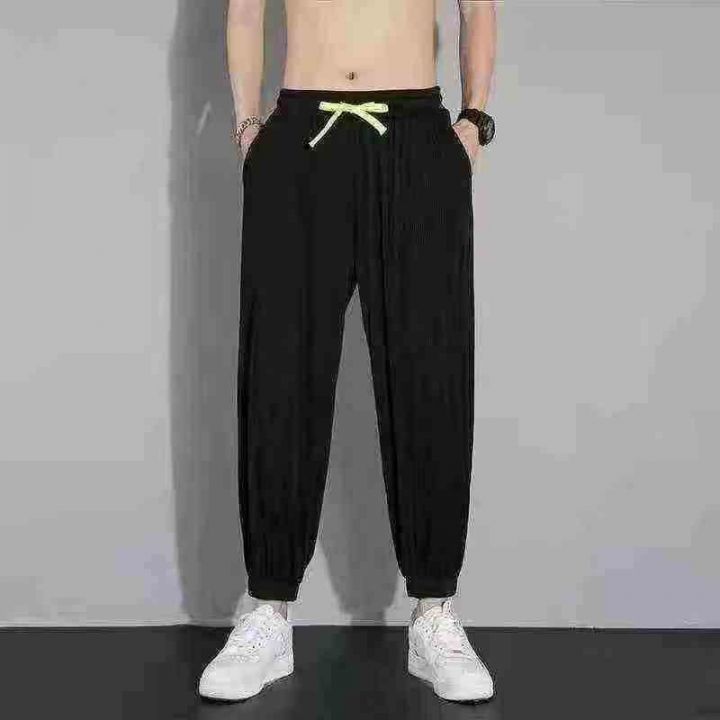 全清6.5元,6538条\'M-5XL裤子夏季男休闲薄款韩版ins潮牌冰丝条纹运动大码弹力宽松哈伦裤\'分货➕0.5
