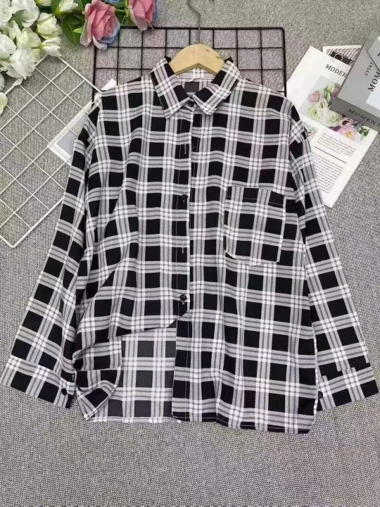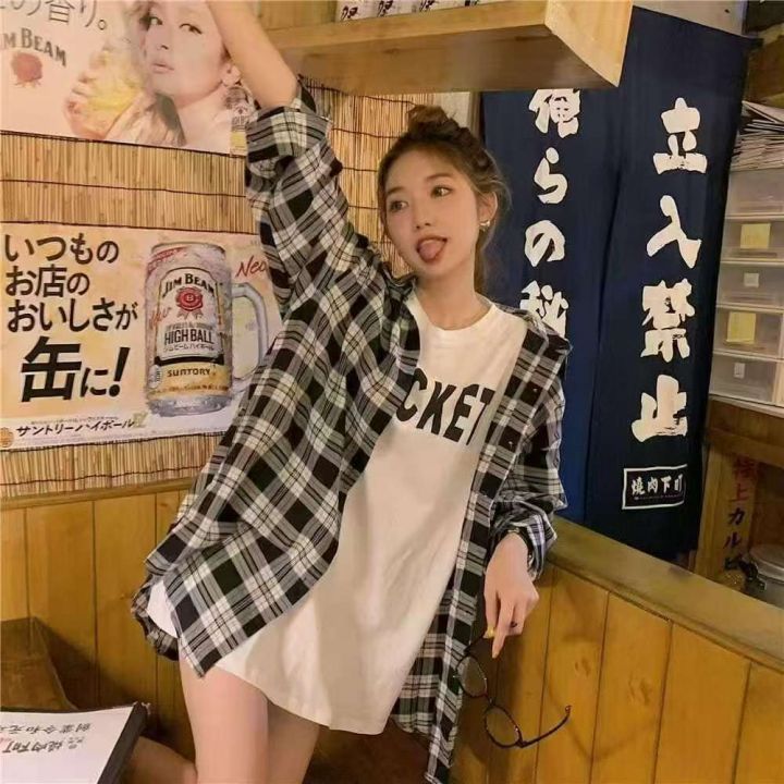 韩版港风复古风宽松格子长袖衬衫,数量:124件,码数: 1-5相当于S-M-L-XL-2XL,有独立包装,4.5元清