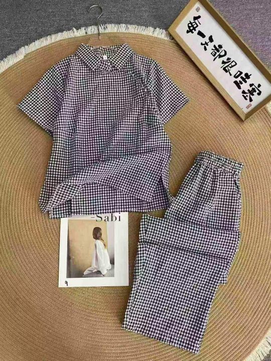 休闲格子套装68套9.5,翻领斜扣设计,下摆开叉,裤子...