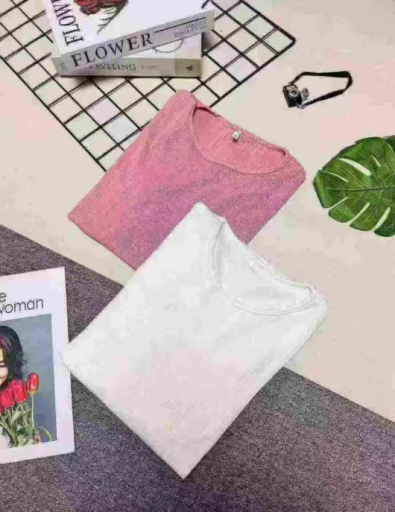 冰丝螺纹短袖,分叉下摆设计,整款两色,独立包装