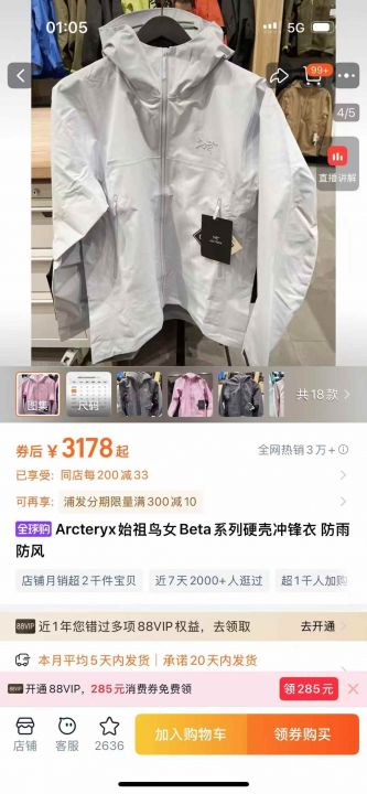 1000多件始祖鸟冲锋衣