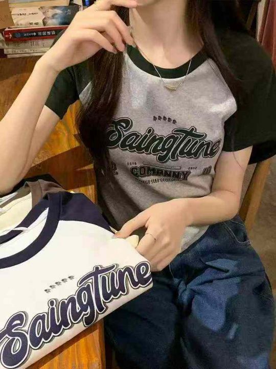 夏季新款美式撞色插肩复古印花针织短袖T桖,独立包装,均码面料柔软舒适弹力大,1930件,全清5.9元超低价秒杀!分货加一!