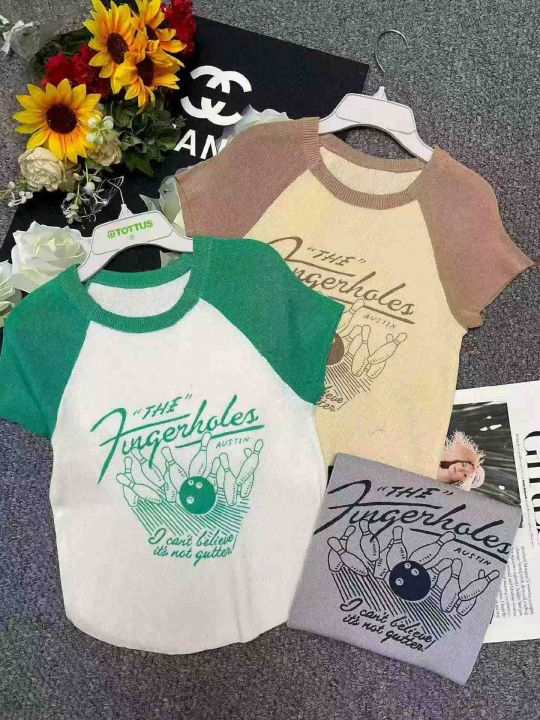 夏季新款美式撞色插肩复古印花针织短袖T桖,独立包装,均码面料柔软舒适弹力大,372件,全清5.9元超低价秒杀!分货加一!