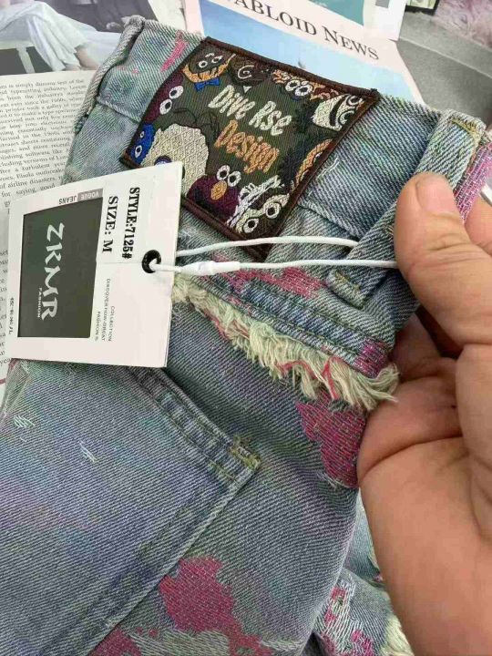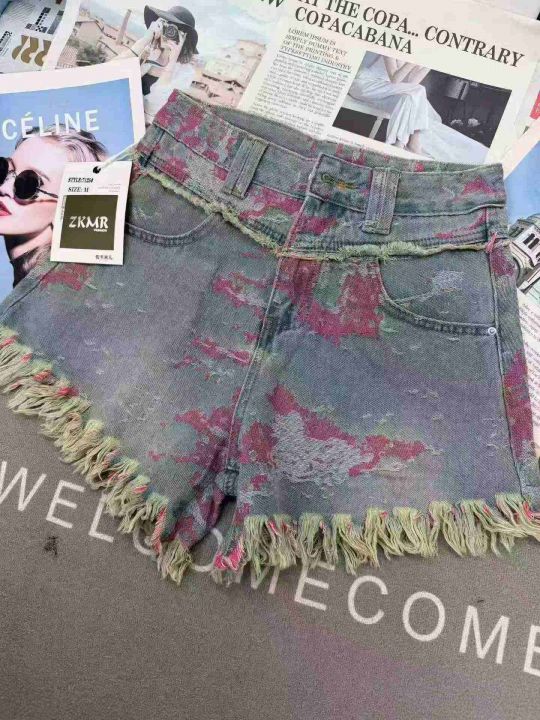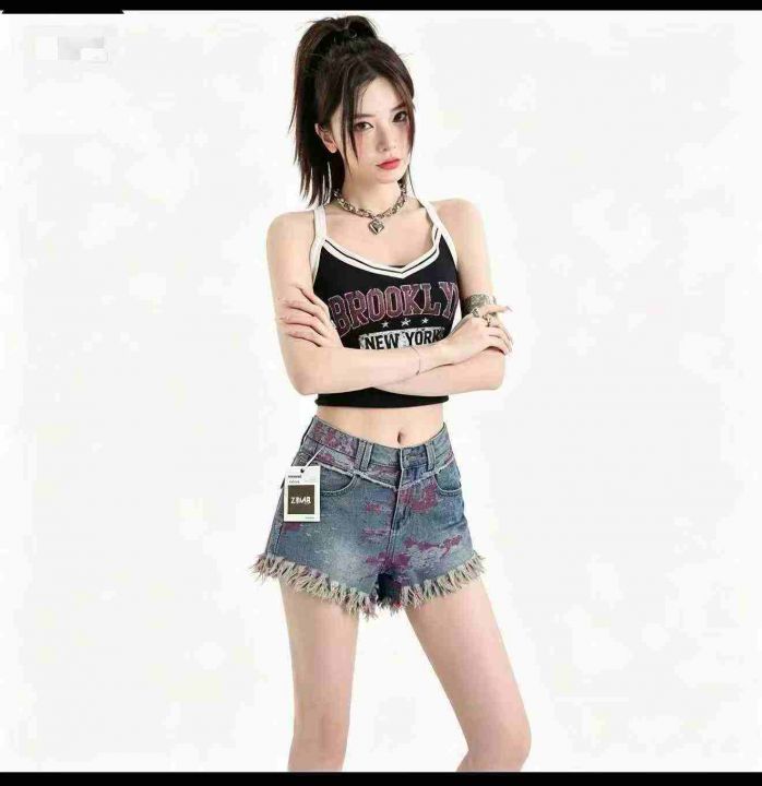 时尚提花阔腿高腰显瘦牛仔短裤,单款单色,独立包装,...