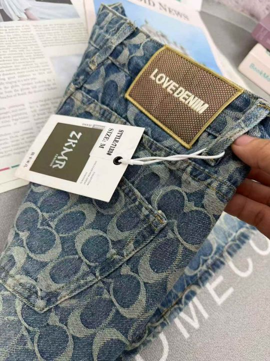 580件韩系松弛感复古做旧小辣妹高腰直筒烟灰色阔腿休闲牛仔裤,尺码2-5(S-X...