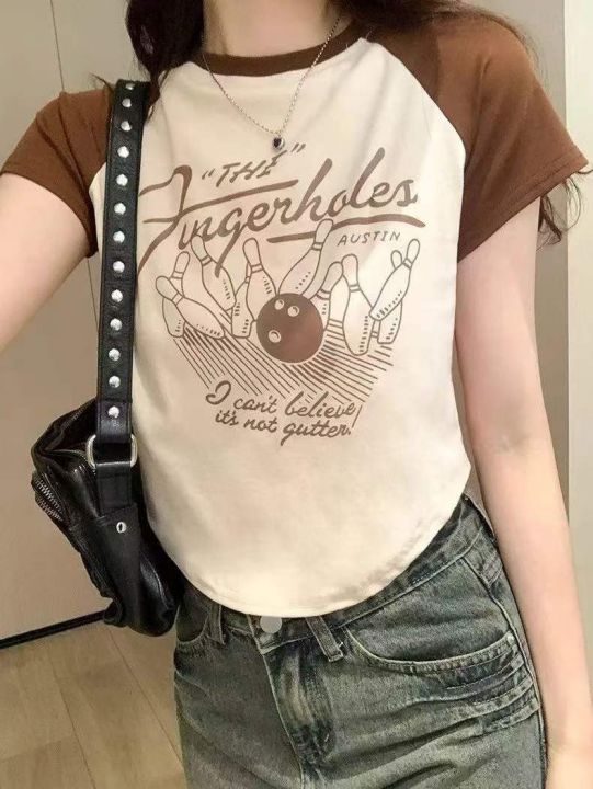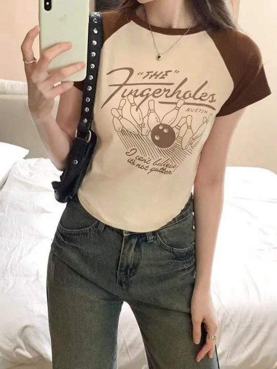 夏季新款美式撞色插肩复古印花针织短袖T桖,独立包装,均码面料柔软舒适弹力大,372件,全清5.9元超低价秒杀!分货加一!
