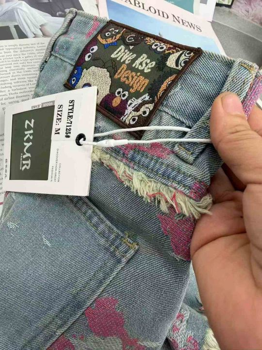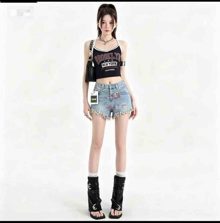 时尚提花阔腿高腰显瘦牛仔短裤,单款单色,独立包装,...