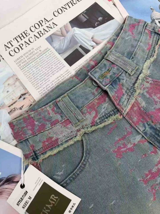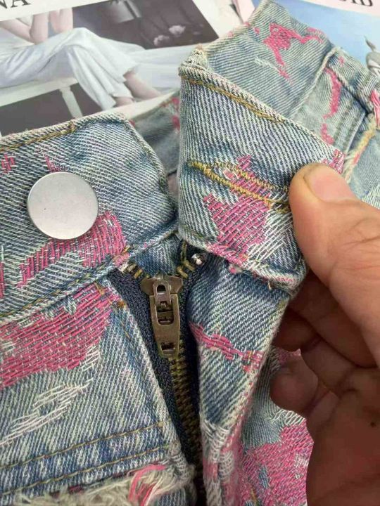 时尚提花阔腿高腰显瘦牛仔短裤,单款单色,独立包装,...