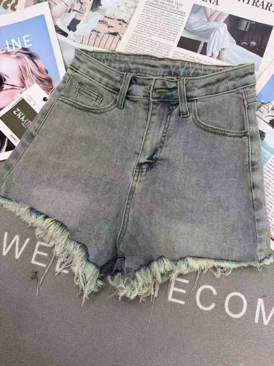 复古毛边夏季辣妹高腰显瘦遮肉弹力牛仔短裤,单款单色...