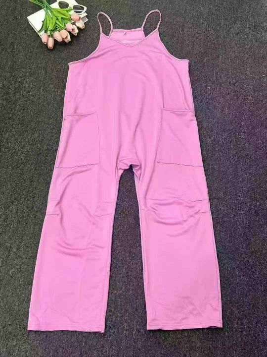 欧美大码V领胖MM浅绿色口袋宽松休闲吊带连体裤,独立包装,700件,S-2XL,全清3.9分货➕1