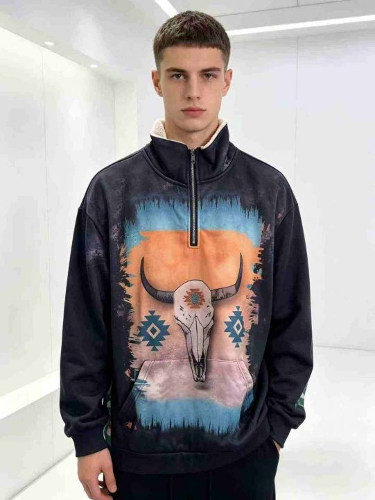 长袖卫衣3D印花男女同款宽松舒适半拉链卫衣,码数S-6XL,独立包装,10000件