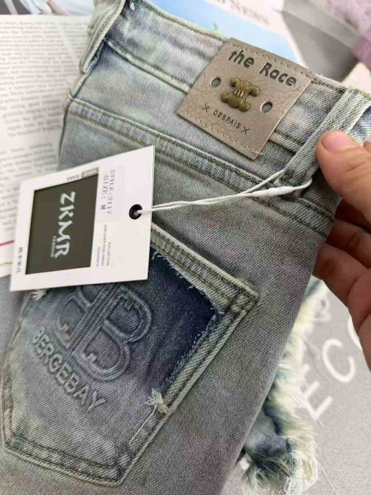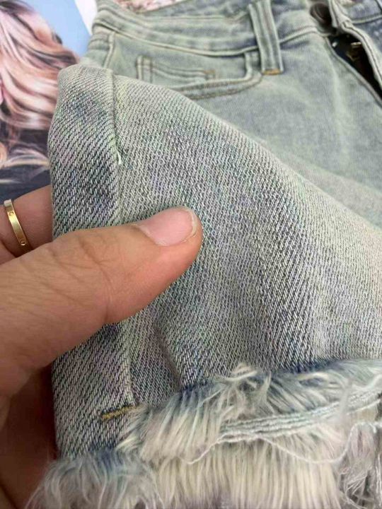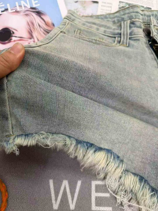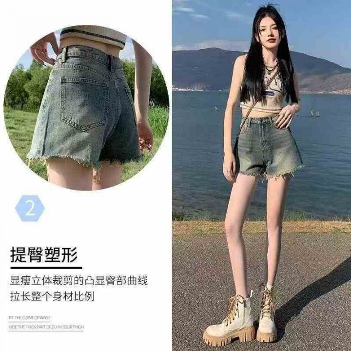 复古毛边夏季辣妹高腰显瘦遮肉弹力牛仔短裤,单款单色...