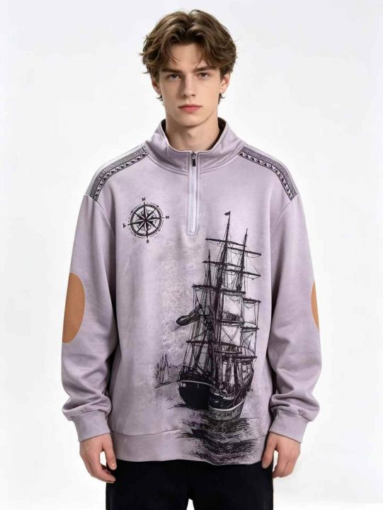 长袖卫衣3D印花男女同款宽松舒适半拉链卫衣,码数S-6XL,独立包装,10000件