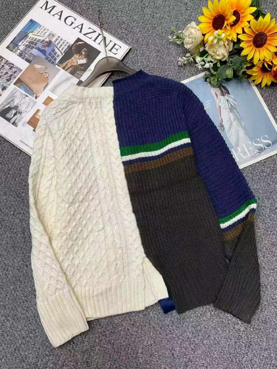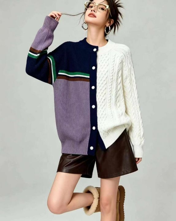 秋冬新款复古撞色拼接设计款麻花慵懒风毛衣开衫外套,...