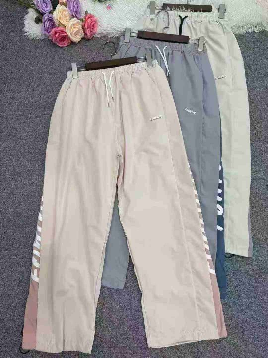 523条,港风休闲裤女2025夏季新款宽松阔腿裤薄款抽绳束脚拼接学生运动裤,独立包装,码数S-3XL\'分货➕0.5,货号001#30