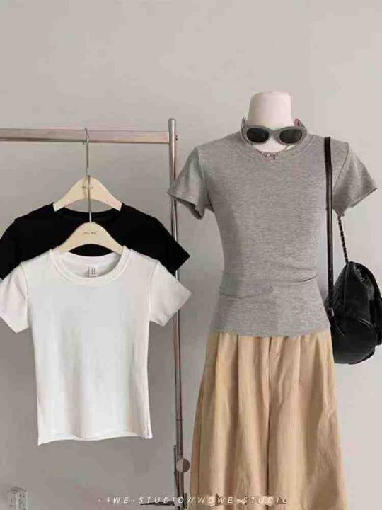 ☕️纯棉韩系正肩圆领纯色短袖T恤女夏季收腰修身设计感短款上衣500件全清7.8元,分货8.8元,单款3个色,独立包装[庆祝][庆祝][庆祝]