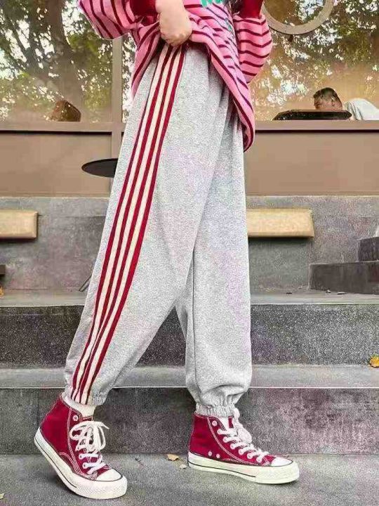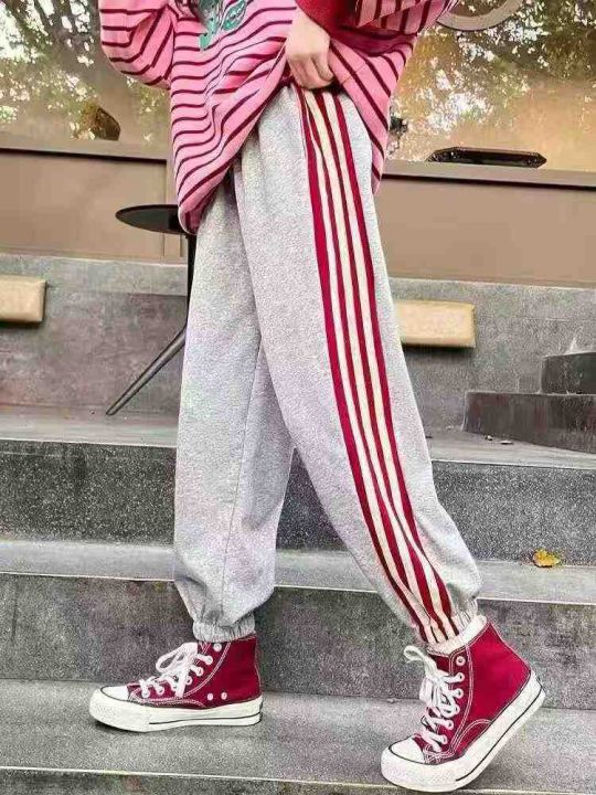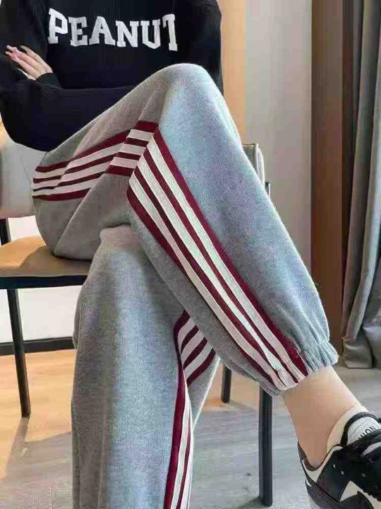 ☕️春秋不加绒卫裤时尚高腰显瘦三道杠条纹束脚运动卫...