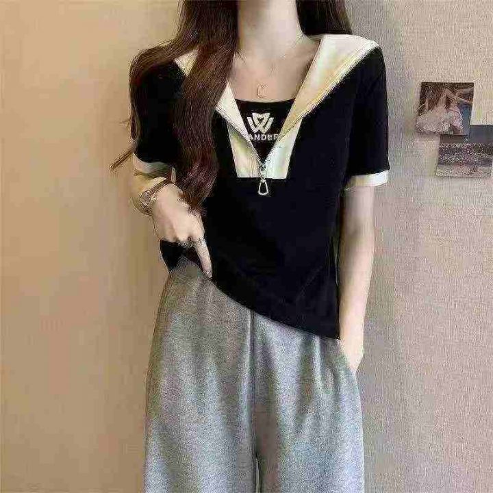 妈妈装撞色翻领短袖t恤韩版宽松气质减龄中年上衣,数量340件,码数s-2xl,...