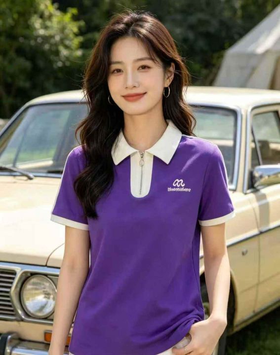 妈妈装撞色翻领短袖t恤韩版宽松气质减龄中年上衣,数...