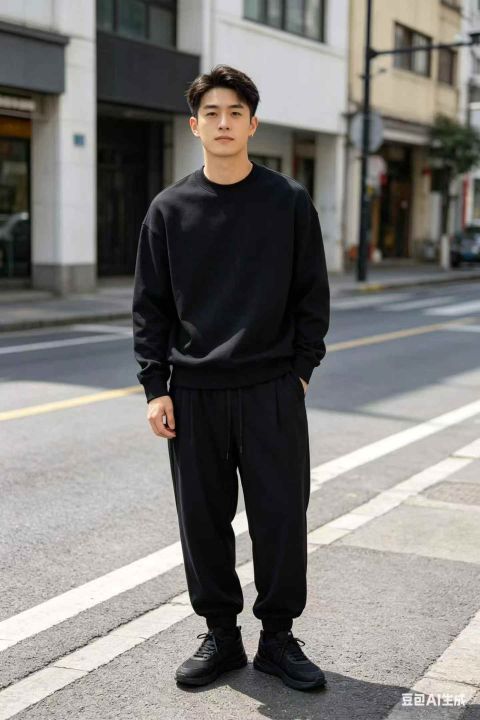 春秋新款品牌外贸原单宽松净版百搭松紧腰束脚纯棉休闲卫裤,独立包装带吊牌...